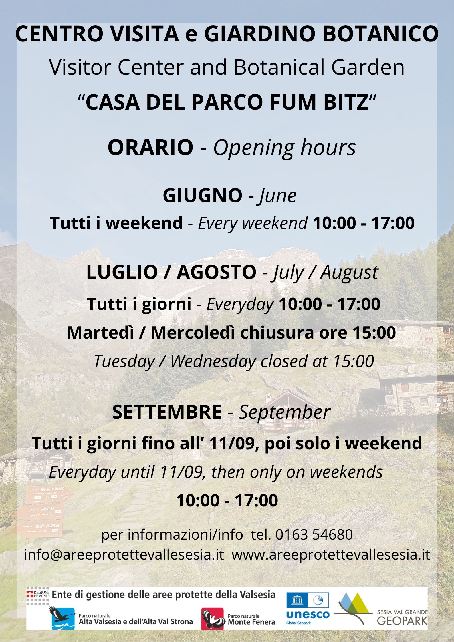 La Casa del Parco all’Alpe Fum Bitz di Alagna Valsesia, ai piedi della parete sud del Monte Rosa, vi stupirà con la bellezza dei suoi panorami e le storie legate alla biodiversità del territorio, accolti dalla nostra Guida Ufficiale.