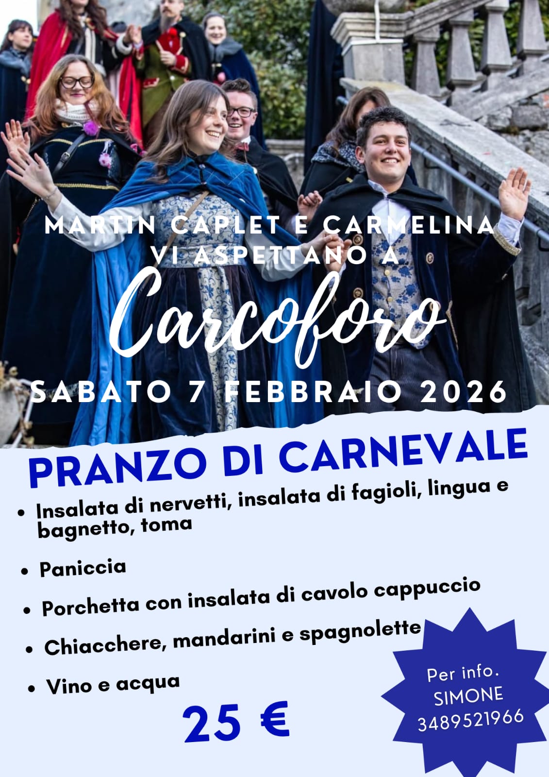 Martin Caplet e Carmelina vi aspettano al Carnevale di Carcoforo sabato 7 febbraio con il seguente orario: